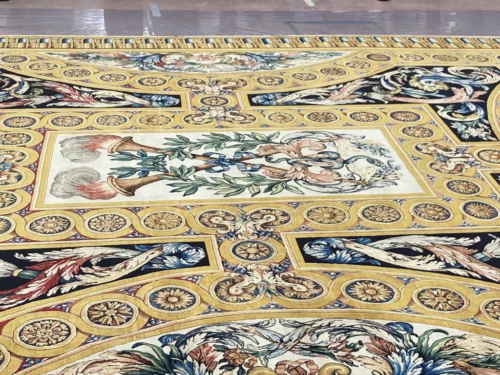 Aujourd’hui 41 des 92 tapis d’origine sont précieusement gardés dans les Collections des Manufactures nationales dont 33 sont complets.