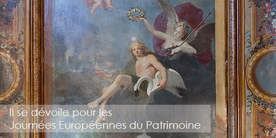Ouverte pendant les Journées du patrimoine, l’hôtel des Saint Pères montrait à la visite une chambre étonnante, décorée  sur le plafond d’une fresque magnifique du XVII e siècle en parfaite état de conservation. La Vertu couronne  le Bon Augure et l’Intelligence, protégée par un faux plafond, la fresque fut découverte par hasard, lors de travaux de rénovation dans les années 80.